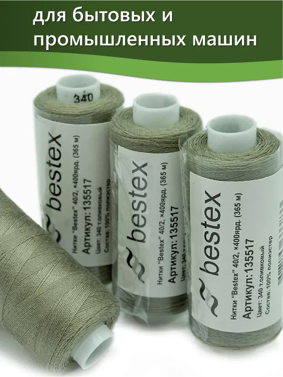 Набор ниток Bestex №40/2 – прекрасный вариант для шитья, ремонта текстильных изделий, рукоделия. Подойдут для бытовых и промышленных швейных машин. Изготовлены из 100 % полиэстера, прочные на разрыв и слегка эластичные, равномерные по толщине, имеют правостороннюю крутку. Обработаны силиконом на 3%, поэтому меньше разрываются при работе на высоких скоростях. Не истончаются и не теряют цвет после многократных стирок и от воздействия ультрафиолетовых лучей. Усадка минимальна, ворс и узелки почти не выражены. Нитки №40/2 подходят для работы с легкими тканями и тканями среднего веса. Назначение: – ремонт текстильных изделий, штопка вещей из трикотажа; – обработка срезов; – шитье вручную и на швейной машине. Линейная плотность: 14,8 x 2 текс. Разрывная нагрузка: 1050 сН. Рекомендуемый размер иглы: №80-90. В упаковке 5 бобин в намотке 400 ярдов.