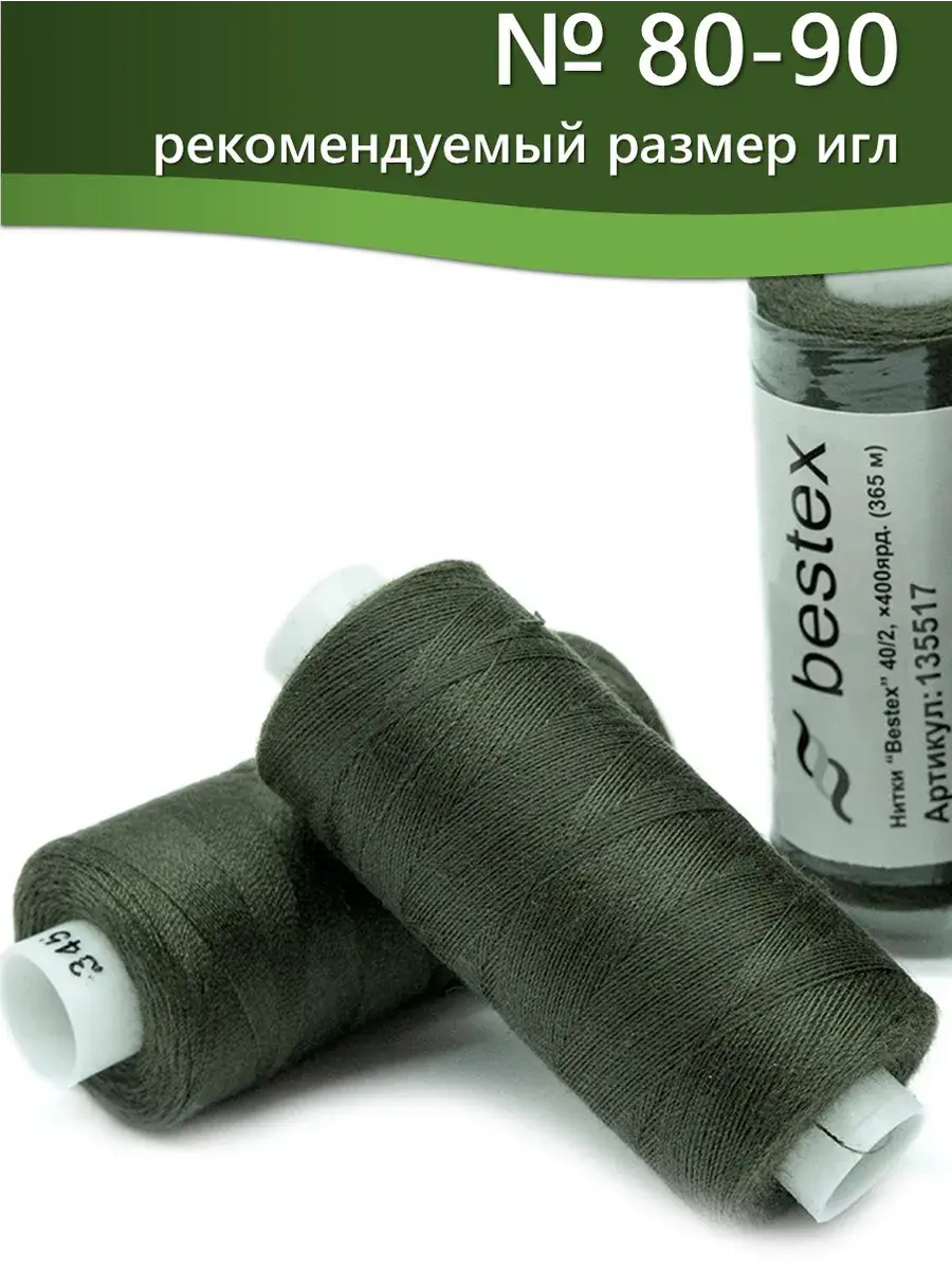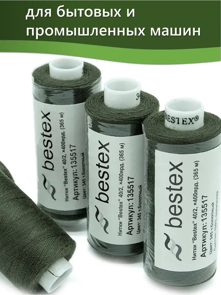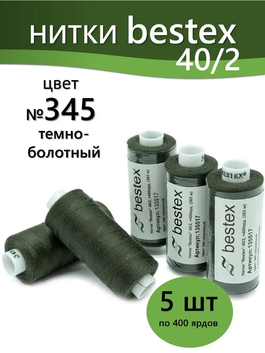 Набор ниток Bestex №40/2 – прекрасный вариант для шитья, ремонта текстильных изделий, рукоделия. Подойдут для бытовых и промышленных швейных машин. Изготовлены из 100 % полиэстера, прочные на разрыв и слегка эластичные, равномерные по толщине, имеют правостороннюю крутку. Обработаны силиконом на 3%, поэтому меньше разрываются при работе на высоких скоростях. Не истончаются и не теряют цвет после многократных стирок и от воздействия ультрафиолетовых лучей. Усадка минимальна, ворс и узелки почти не выражены. Нитки №40/2 подходят для работы с легкими тканями и тканями среднего веса. Назначение: – ремонт текстильных изделий, штопка вещей из трикотажа; – обработка срезов; – шитье вручную и на швейной машине. Линейная плотность: 14,8 x 2 текс. Разрывная нагрузка: 1050 сН. Рекомендуемый размер иглы: №80-90. В упаковке 5 бобин в намотке 400 ярдов.