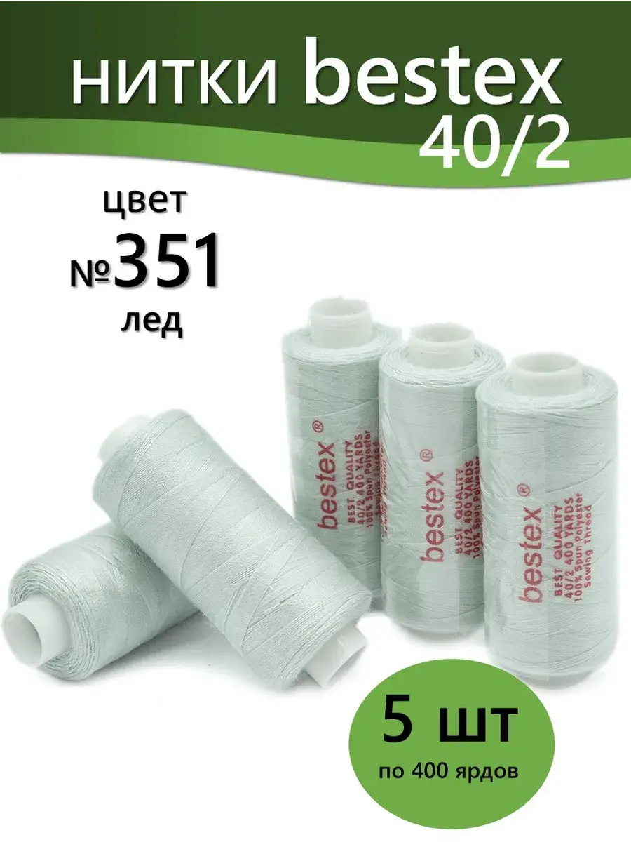 Набор ниток Bestex №40/2 – прекрасный вариант для шитья, ремонта текстильных изделий, рукоделия. Подойдут для бытовых и промышленных швейных машин. Изготовлены из 100 % полиэстера, прочные на разрыв и слегка эластичные, равномерные по толщине, имеют правостороннюю крутку. Обработаны силиконом на 3%, поэтому меньше разрываются при работе на высоких скоростях. Не истончаются и не теряют цвет после многократных стирок и от воздействия ультрафиолетовых лучей. Усадка минимальна, ворс и узелки почти не выражены. Нитки №40/2 подходят для работы с легкими тканями и тканями среднего веса. Назначение: – ремонт текстильных изделий, штопка вещей из трикотажа; – обработка срезов; – шитье вручную и на швейной машине. Линейная плотность: 14,8 x 2 текс. Разрывная нагрузка: 1050 сН. Рекомендуемый размер иглы: №80-90. В упаковке 5 бобин в намотке 400 ярдов.