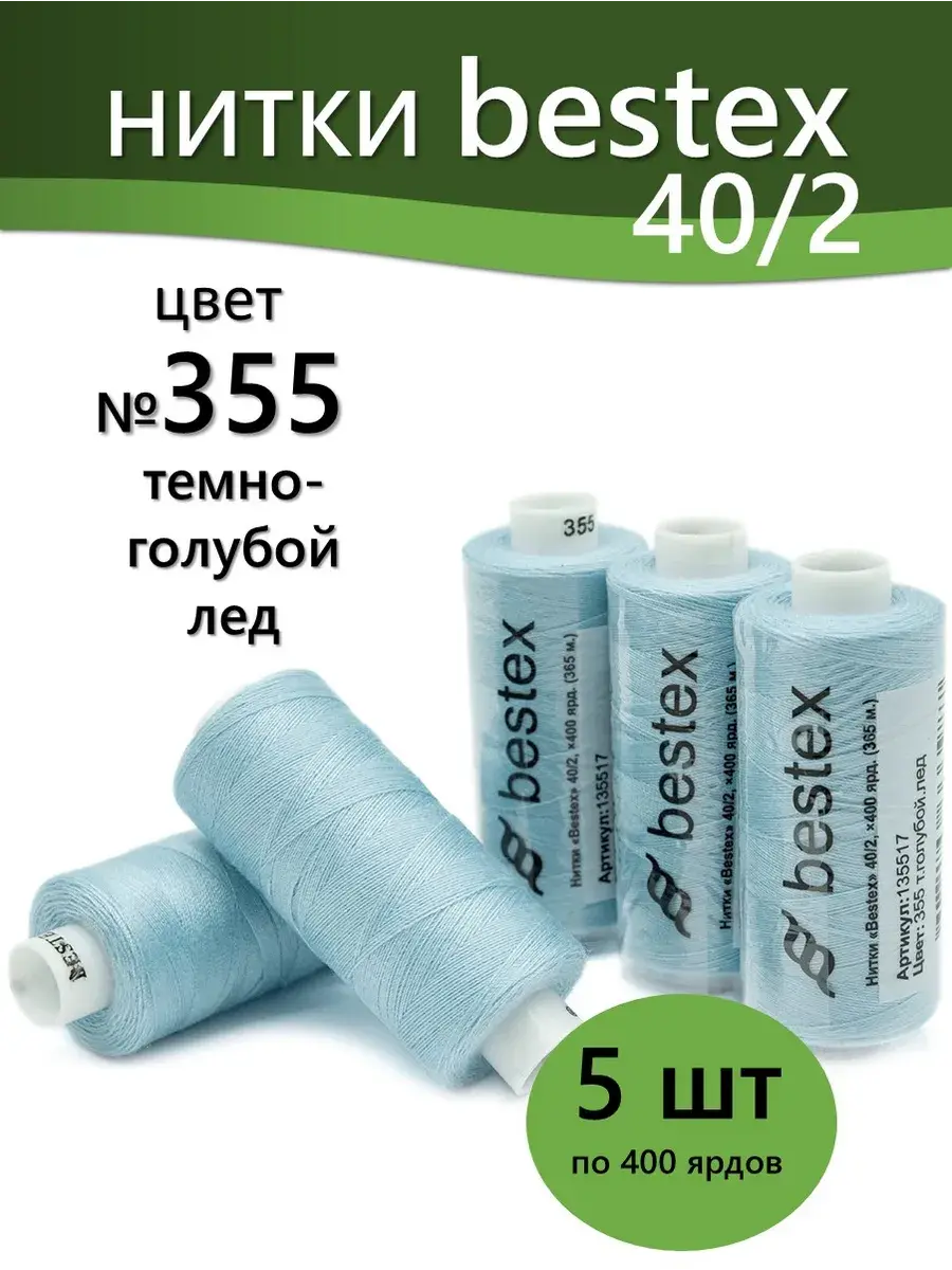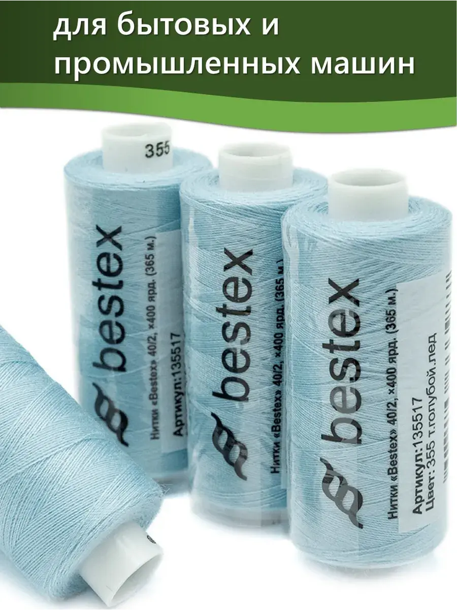 Набор ниток Bestex №40/2 – прекрасный вариант для шитья, ремонта текстильных изделий, рукоделия. Подойдут для бытовых и промышленных швейных машин. Изготовлены из 100 % полиэстера, прочные на разрыв и слегка эластичные, равномерные по толщине, имеют правостороннюю крутку. Обработаны силиконом на 3%, поэтому меньше разрываются при работе на высоких скоростях. Не истончаются и не теряют цвет после многократных стирок и от воздействия ультрафиолетовых лучей. Усадка минимальна, ворс и узелки почти не выражены. Нитки №40/2 подходят для работы с легкими тканями и тканями среднего веса. Назначение: – ремонт текстильных изделий, штопка вещей из трикотажа; – обработка срезов; – шитье вручную и на швейной машине. Линейная плотность: 14,8 x 2 текс. Разрывная нагрузка: 1050 сН. Рекомендуемый размер иглы: №80-90. В упаковке 5 бобин в намотке 400 ярдов.