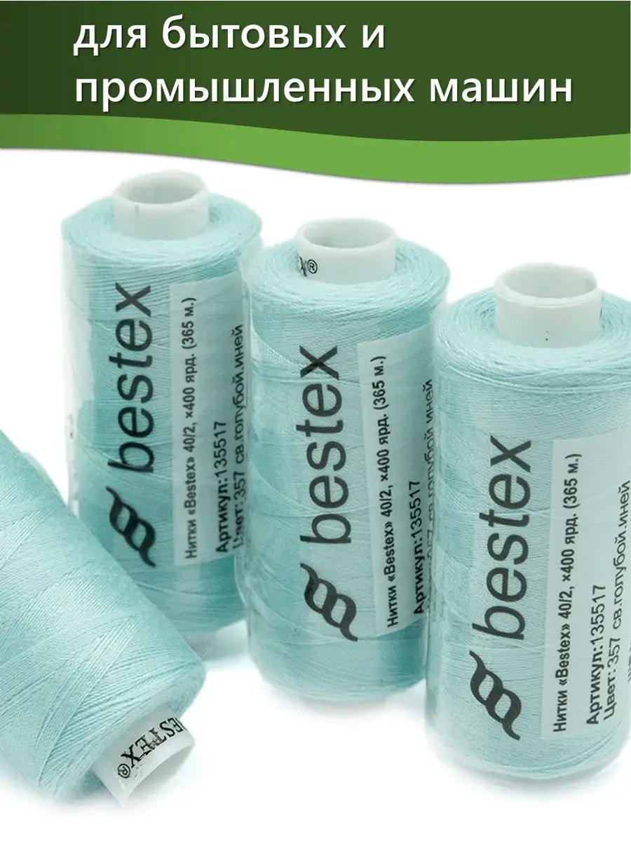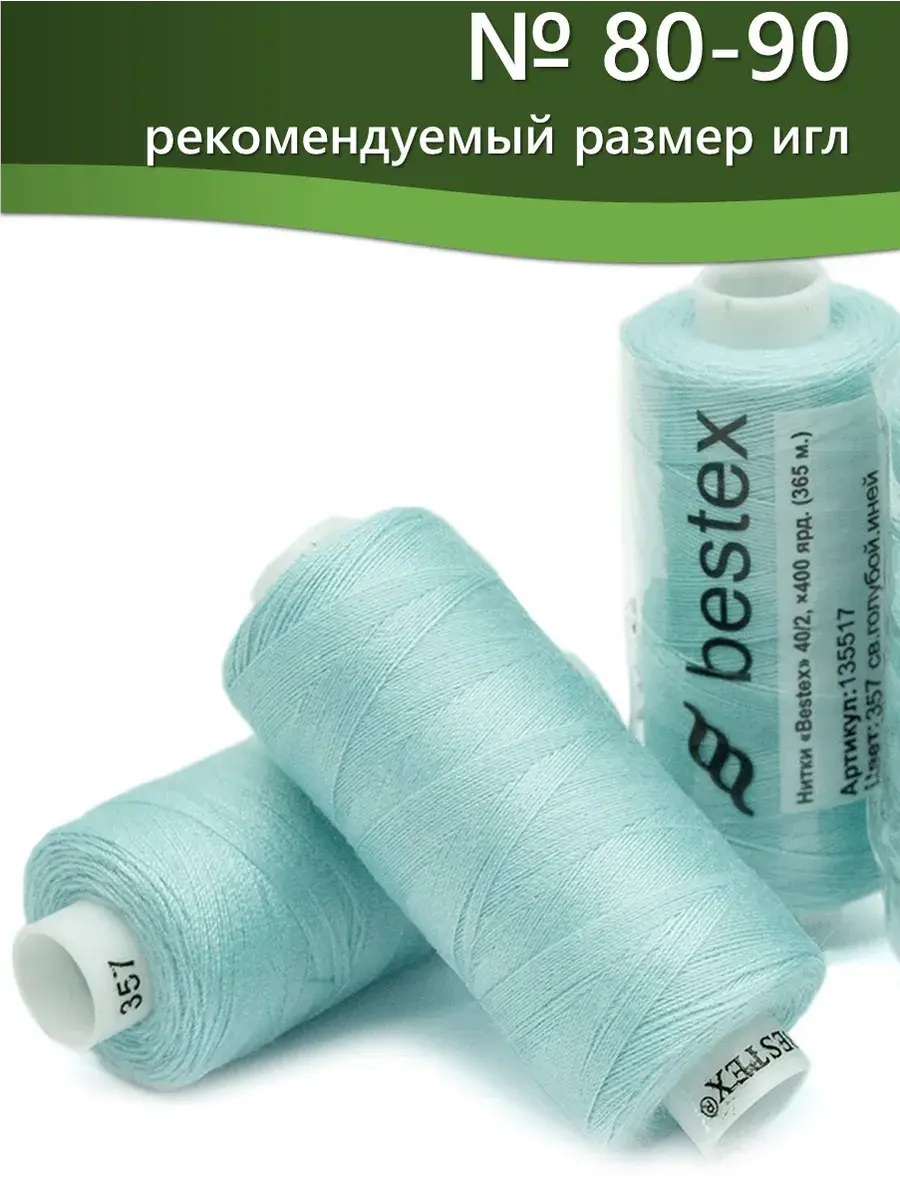 Набор ниток Bestex №40/2 – прекрасный вариант для шитья, ремонта текстильных изделий, рукоделия. Подойдут для бытовых и промышленных швейных машин. Изготовлены из 100 % полиэстера, прочные на разрыв и слегка эластичные, равномерные по толщине, имеют правостороннюю крутку. Обработаны силиконом на 3%, поэтому меньше разрываются при работе на высоких скоростях. Не истончаются и не теряют цвет после многократных стирок и от воздействия ультрафиолетовых лучей. Усадка минимальна, ворс и узелки почти не выражены. Нитки №40/2 подходят для работы с легкими тканями и тканями среднего веса. Назначение: – ремонт текстильных изделий, штопка вещей из трикотажа; – обработка срезов; – шитье вручную и на швейной машине. Линейная плотность: 14,8 x 2 текс. Разрывная нагрузка: 1050 сН. Рекомендуемый размер иглы: №80-90. В упаковке 5 бобин в намотке 400 ярдов.