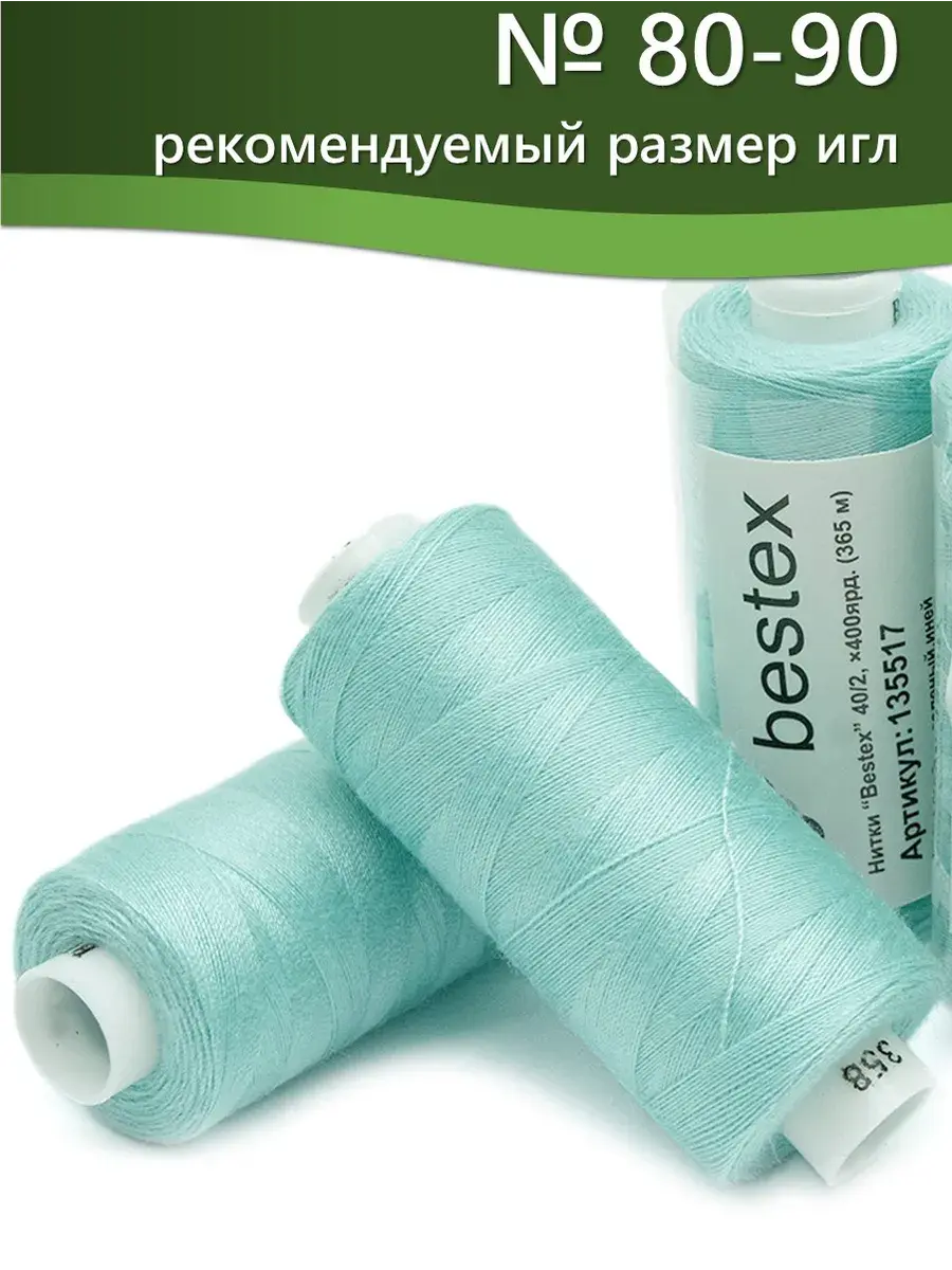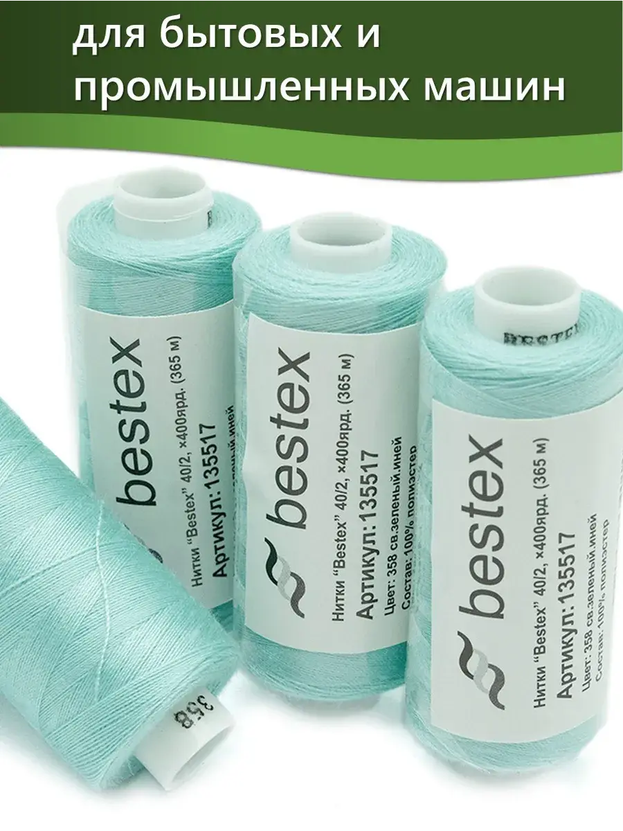 Набор ниток Bestex №40/2 – прекрасный вариант для шитья, ремонта текстильных изделий, рукоделия. Подойдут для бытовых и промышленных швейных машин. Изготовлены из 100 % полиэстера, прочные на разрыв и слегка эластичные, равномерные по толщине, имеют правостороннюю крутку. Обработаны силиконом на 3%, поэтому меньше разрываются при работе на высоких скоростях. Не истончаются и не теряют цвет после многократных стирок и от воздействия ультрафиолетовых лучей. Усадка минимальна, ворс и узелки почти не выражены. Нитки №40/2 подходят для работы с легкими тканями и тканями среднего веса. Назначение: – ремонт текстильных изделий, штопка вещей из трикотажа; – обработка срезов; – шитье вручную и на швейной машине. Линейная плотность: 14,8 x 2 текс. Разрывная нагрузка: 1050 сН. Рекомендуемый размер иглы: №80-90. В упаковке 5 бобин в намотке 400 ярдов.