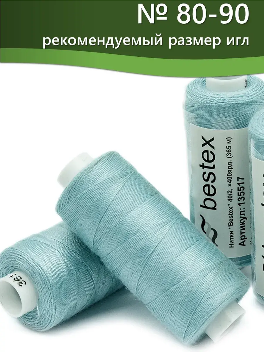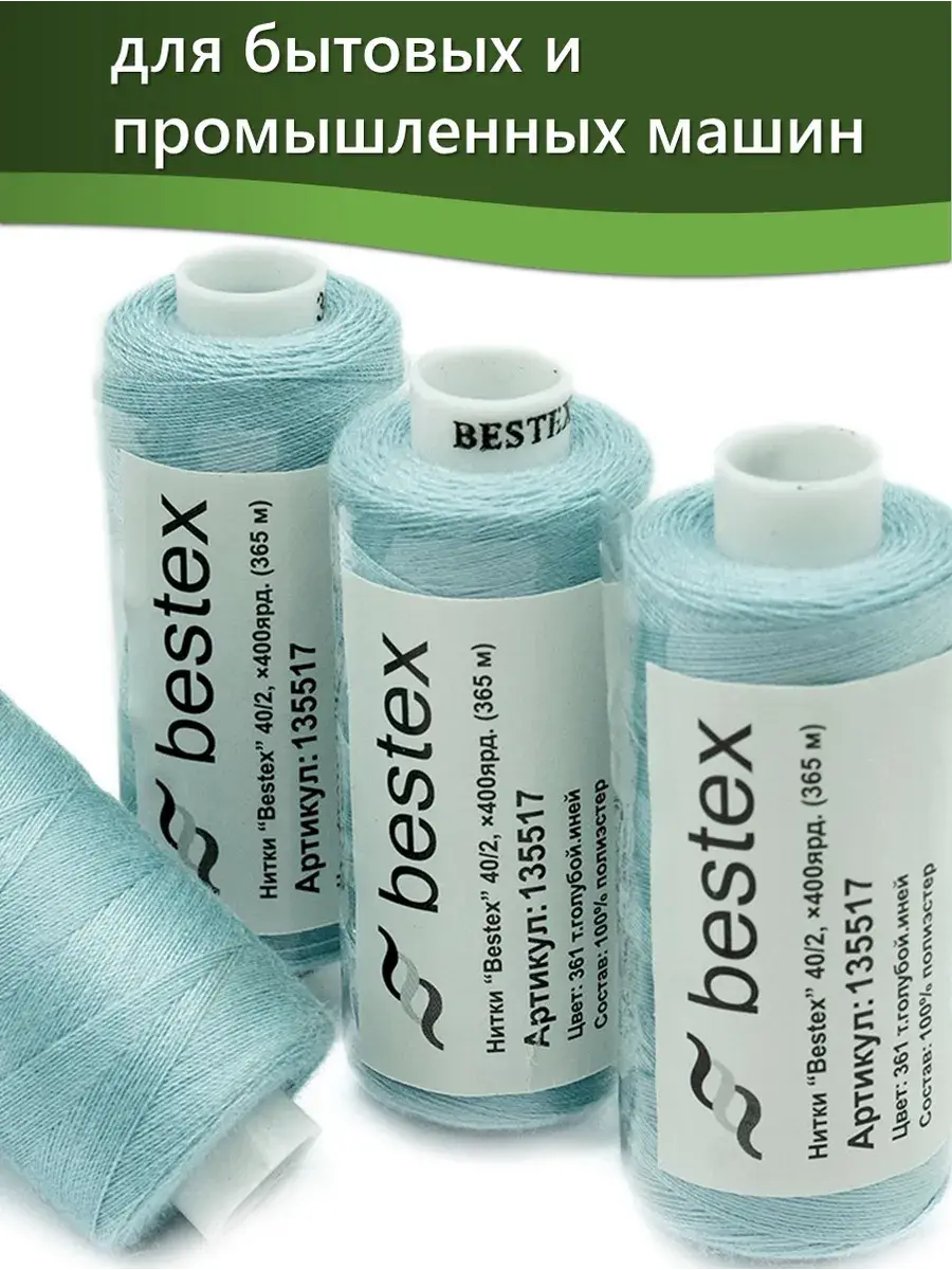 Набор ниток Bestex №40/2 – прекрасный вариант для шитья, ремонта текстильных изделий, рукоделия. Подойдут для бытовых и промышленных швейных машин. Изготовлены из 100 % полиэстера, прочные на разрыв и слегка эластичные, равномерные по толщине, имеют правостороннюю крутку. Обработаны силиконом на 3%, поэтому меньше разрываются при работе на высоких скоростях. Не истончаются и не теряют цвет после многократных стирок и от воздействия ультрафиолетовых лучей. Усадка минимальна, ворс и узелки почти не выражены. Нитки №40/2 подходят для работы с легкими тканями и тканями среднего веса. Назначение: – ремонт текстильных изделий, штопка вещей из трикотажа; – обработка срезов; – шитье вручную и на швейной машине. Линейная плотность: 14,8 x 2 текс. Разрывная нагрузка: 1050 сН. Рекомендуемый размер иглы: №80-90. В упаковке 5 бобин в намотке 400 ярдов.