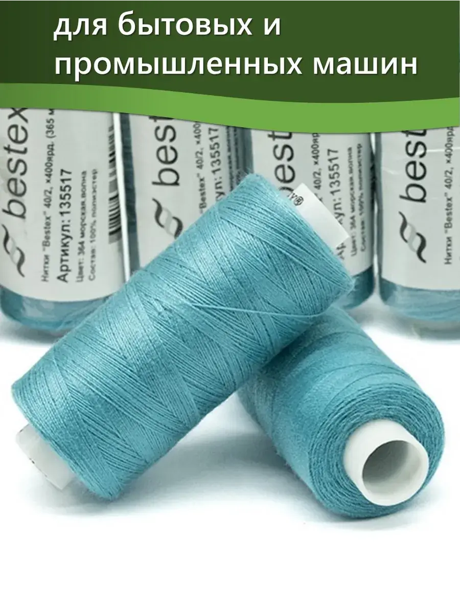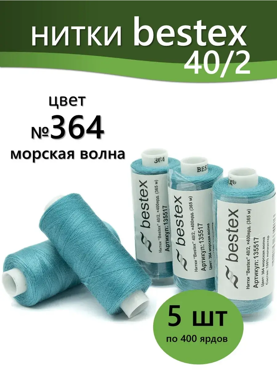 Набор ниток Bestex №40/2 – прекрасный вариант для шитья, ремонта текстильных изделий, рукоделия. Подойдут для бытовых и промышленных швейных машин. Изготовлены из 100 % полиэстера, прочные на разрыв и слегка эластичные, равномерные по толщине, имеют правостороннюю крутку. Обработаны силиконом на 3%, поэтому меньше разрываются при работе на высоких скоростях. Не истончаются и не теряют цвет после многократных стирок и от воздействия ультрафиолетовых лучей. Усадка минимальна, ворс и узелки почти не выражены. Нитки №40/2 подходят для работы с легкими тканями и тканями среднего веса. Назначение: – ремонт текстильных изделий, штопка вещей из трикотажа; – обработка срезов; – шитье вручную и на швейной машине. Линейная плотность: 14,8 x 2 текс. Разрывная нагрузка: 1050 сН. Рекомендуемый размер иглы: №80-90. В упаковке 5 бобин в намотке 400 ярдов.