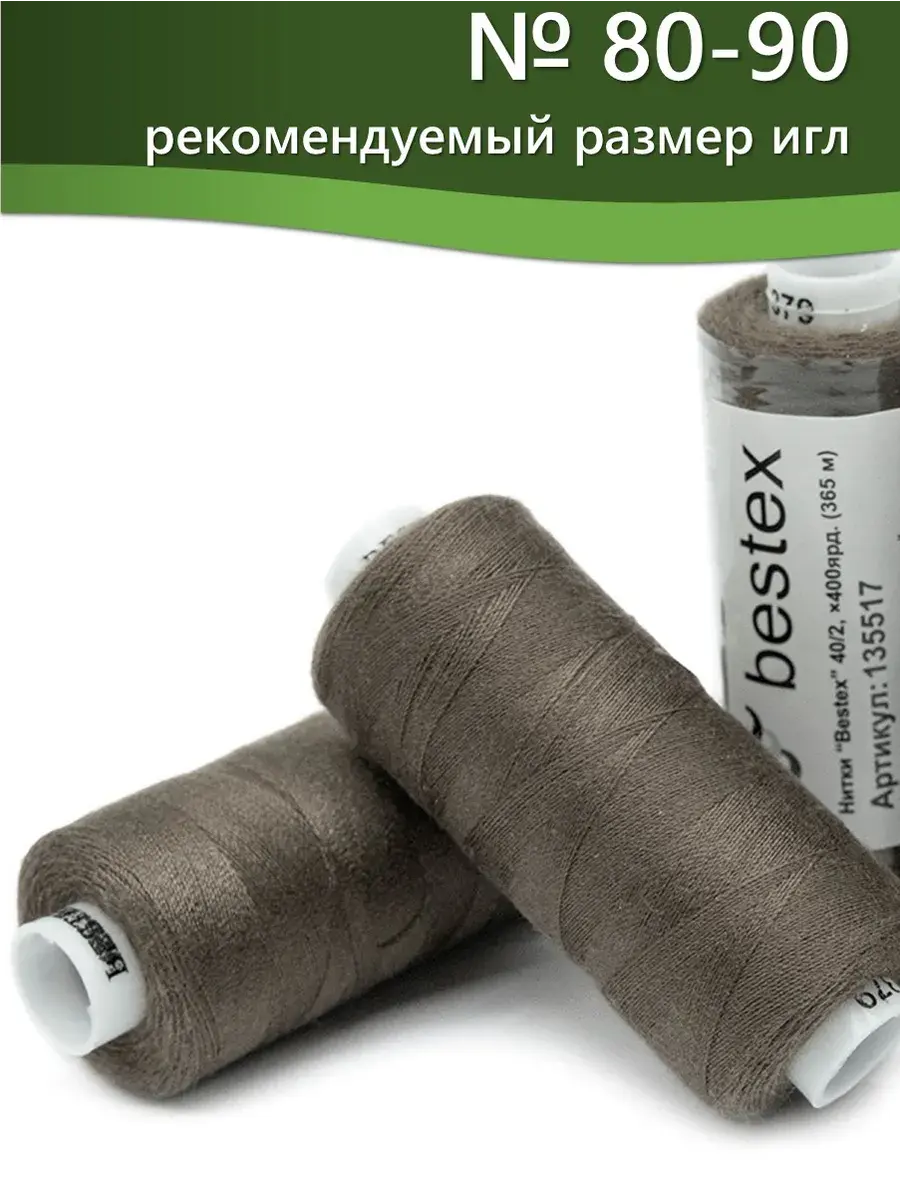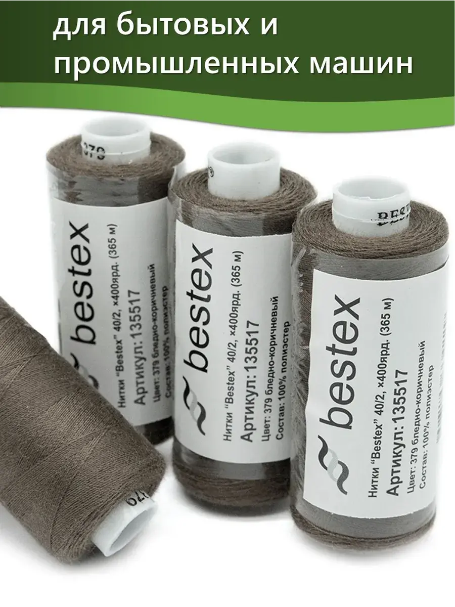 Набор ниток Bestex №40/2 – прекрасный вариант для шитья, ремонта текстильных изделий, рукоделия. Подойдут для бытовых и промышленных швейных машин. Изготовлены из 100 % полиэстера, прочные на разрыв и слегка эластичные, равномерные по толщине, имеют правостороннюю крутку. Обработаны силиконом на 3%, поэтому меньше разрываются при работе на высоких скоростях. Не истончаются и не теряют цвет после многократных стирок и от воздействия ультрафиолетовых лучей. Усадка минимальна, ворс и узелки почти не выражены. Нитки №40/2 подходят для работы с легкими тканями и тканями среднего веса. Назначение: – ремонт текстильных изделий, штопка вещей из трикотажа; – обработка срезов; – шитье вручную и на швейной машине. Линейная плотность: 14,8 x 2 текс. Разрывная нагрузка: 1050 сН. Рекомендуемый размер иглы: №80-90. В упаковке 5 бобин в намотке 400 ярдов.