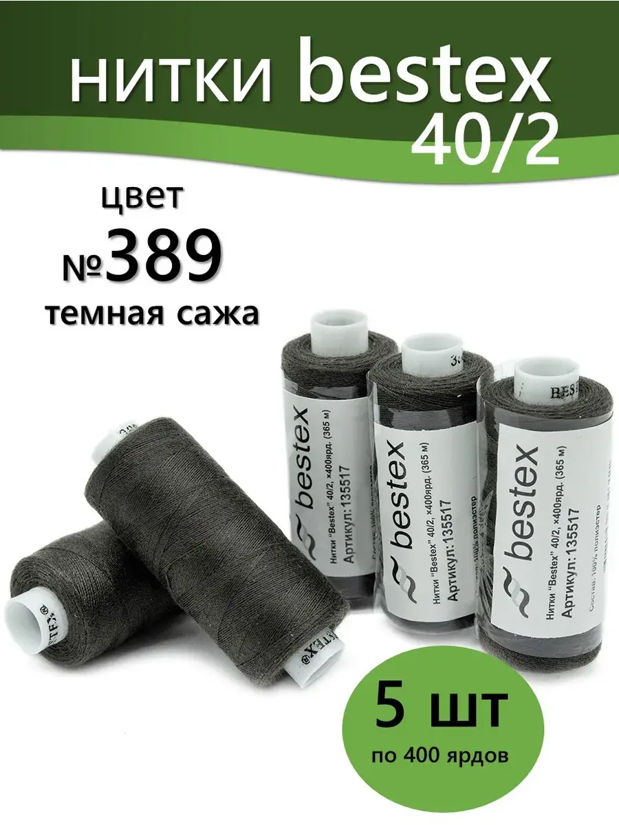 Набор ниток Bestex №40/2 – прекрасный вариант для шитья, ремонта текстильных изделий, рукоделия. Подойдут для бытовых и промышленных швейных машин. Изготовлены из 100 % полиэстера, прочные на разрыв и слегка эластичные, равномерные по толщине, имеют правостороннюю крутку. Обработаны силиконом на 3%, поэтому меньше разрываются при работе на высоких скоростях. Не истончаются и не теряют цвет после многократных стирок и от воздействия ультрафиолетовых лучей. Усадка минимальна, ворс и узелки почти не выражены. Нитки №40/2 подходят для работы с легкими тканями и тканями среднего веса. Назначение: – ремонт текстильных изделий, штопка вещей из трикотажа; – обработка срезов; – шитье вручную и на швейной машине. Линейная плотность: 14,8 x 2 текс. Разрывная нагрузка: 1050 сН. Рекомендуемый размер иглы: №80-90. В упаковке 5 бобин в намотке 400 ярдов.