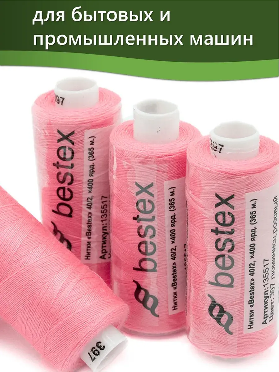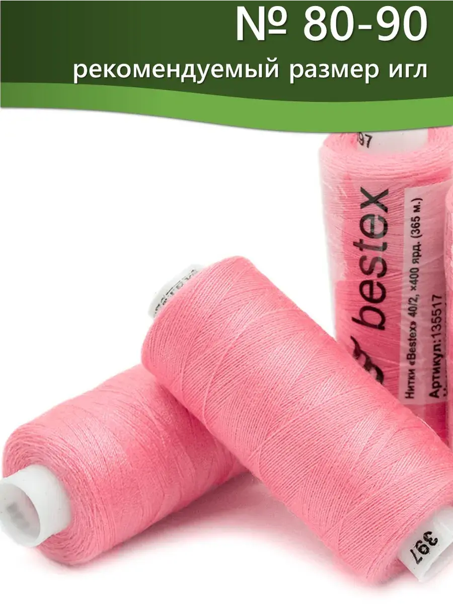 Набор ниток Bestex №40/2 – прекрасный вариант для шитья, ремонта текстильных изделий, рукоделия. Подойдут для бытовых и промышленных швейных машин. Изготовлены из 100 % полиэстера, прочные на разрыв и слегка эластичные, равномерные по толщине, имеют правостороннюю крутку. Обработаны силиконом на 3%, поэтому меньше разрываются при работе на высоких скоростях. Не истончаются и не теряют цвет после многократных стирок и от воздействия ультрафиолетовых лучей. Усадка минимальна, ворс и узелки почти не выражены. Нитки №40/2 подходят для работы с легкими тканями и тканями среднего веса. Назначение: – ремонт текстильных изделий, штопка вещей из трикотажа; – обработка срезов; – шитье вручную и на швейной машине. Линейная плотность: 14,8 x 2 текс. Разрывная нагрузка: 1050 сН. Рекомендуемый размер иглы: №80-90. В упаковке 5 бобин в намотке 400 ярдов.