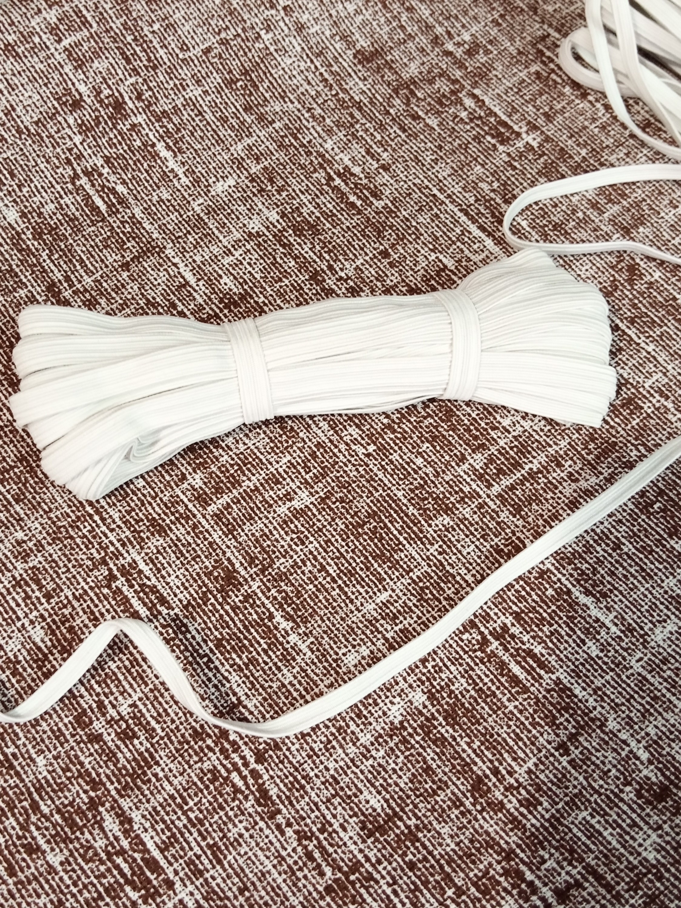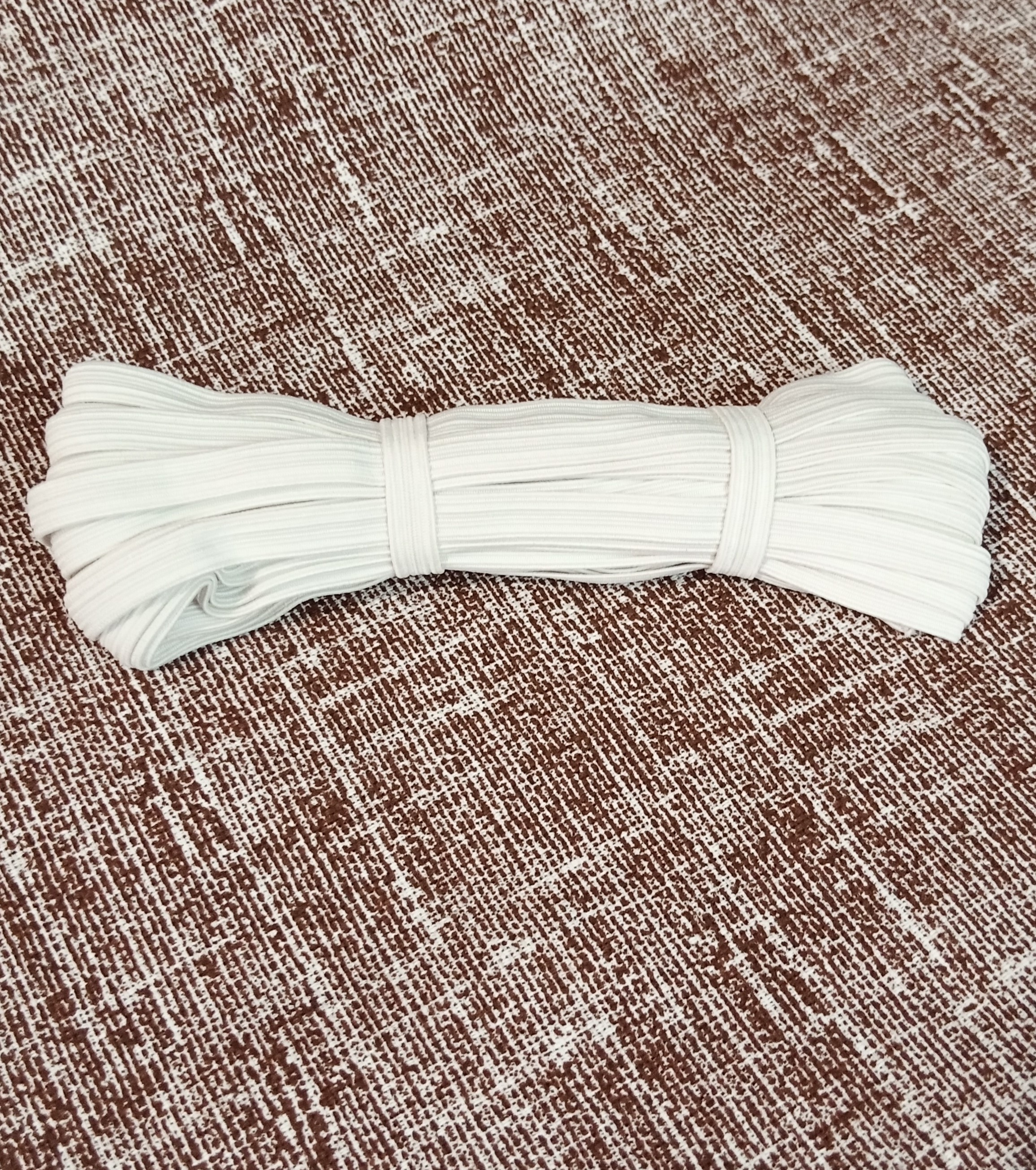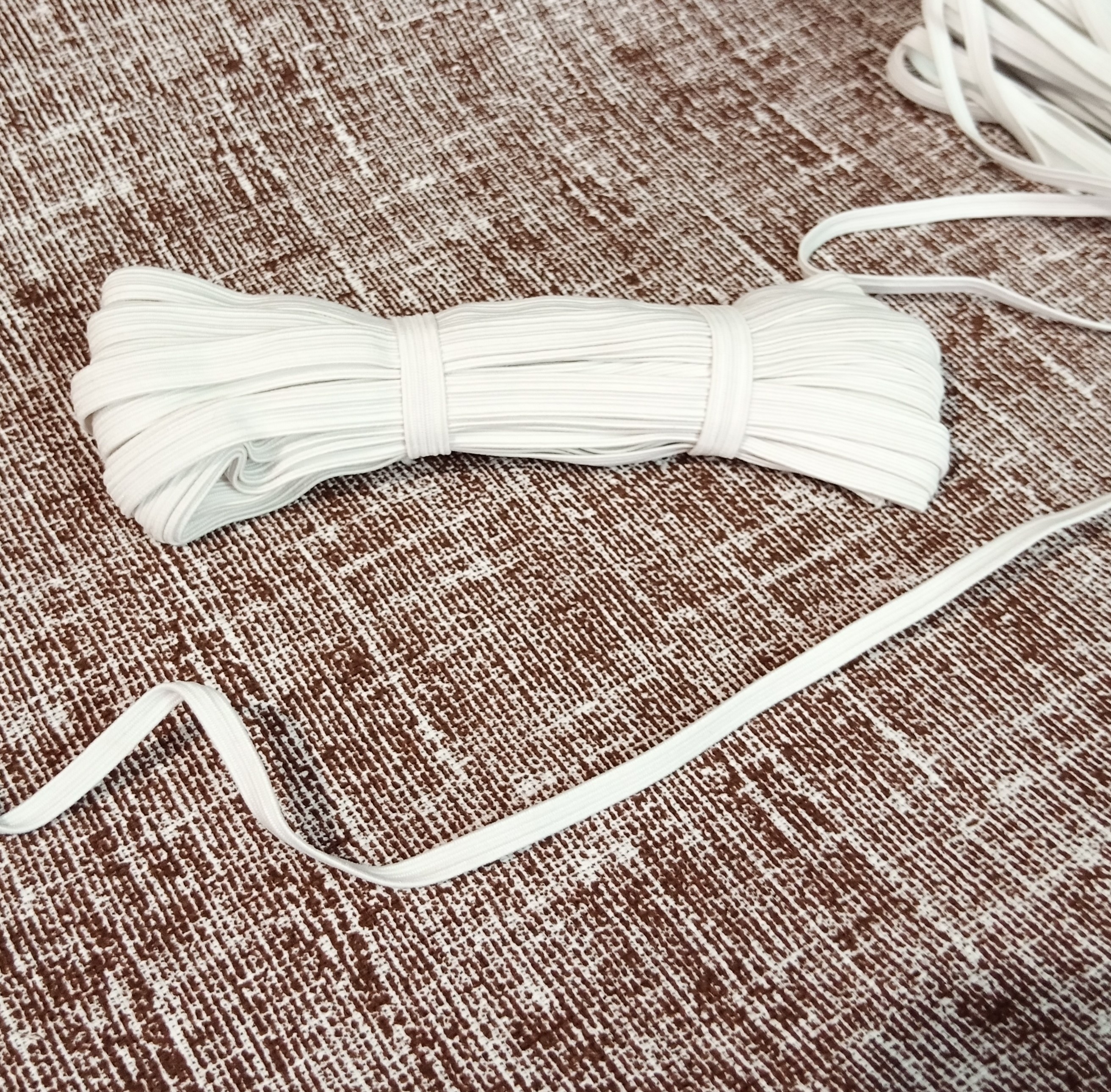 Эластичная тесьма (продёжка) шириной 5 мм — это резинка, изготовленная из эластичных волокон в оплётке из полиэфирных нитей.