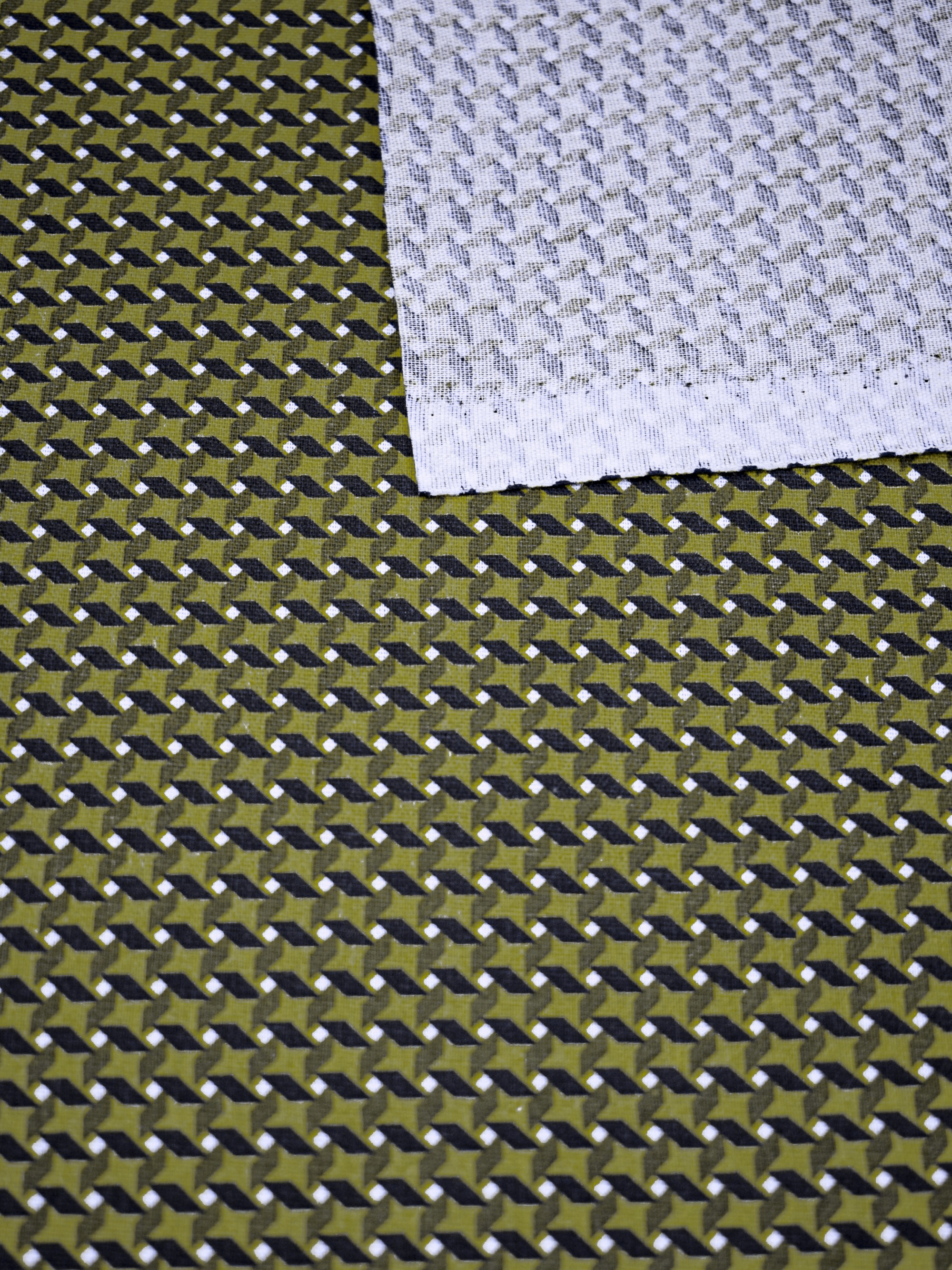 Особенность — полотняная техника плетения нитей: каждая основная нить пересекается с уточной только один раз, образуя простой узор «крест-накрест». Благодаря этому изнаночная и лицевая сторона материала получаются одинаковыми, а его поверхность становится шероховатой и матовой.